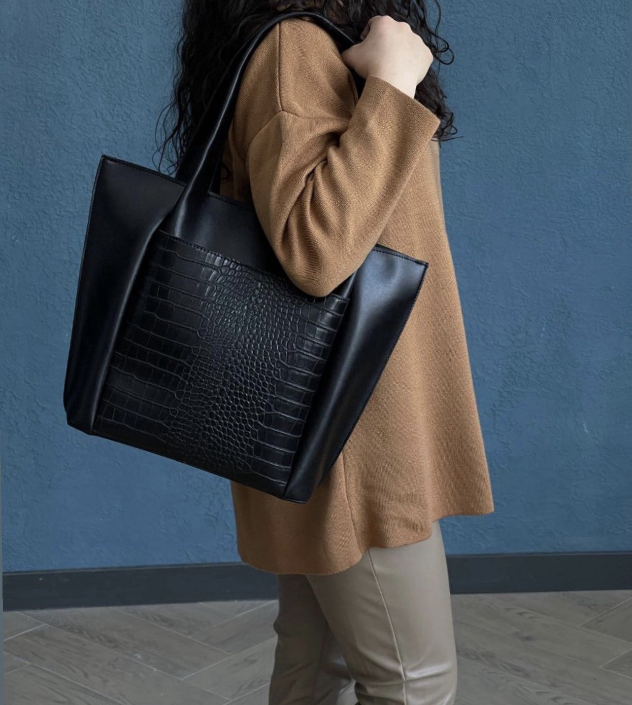 Saddler Kadın Siyah Kroko Desenli Ön Cepli Çanta