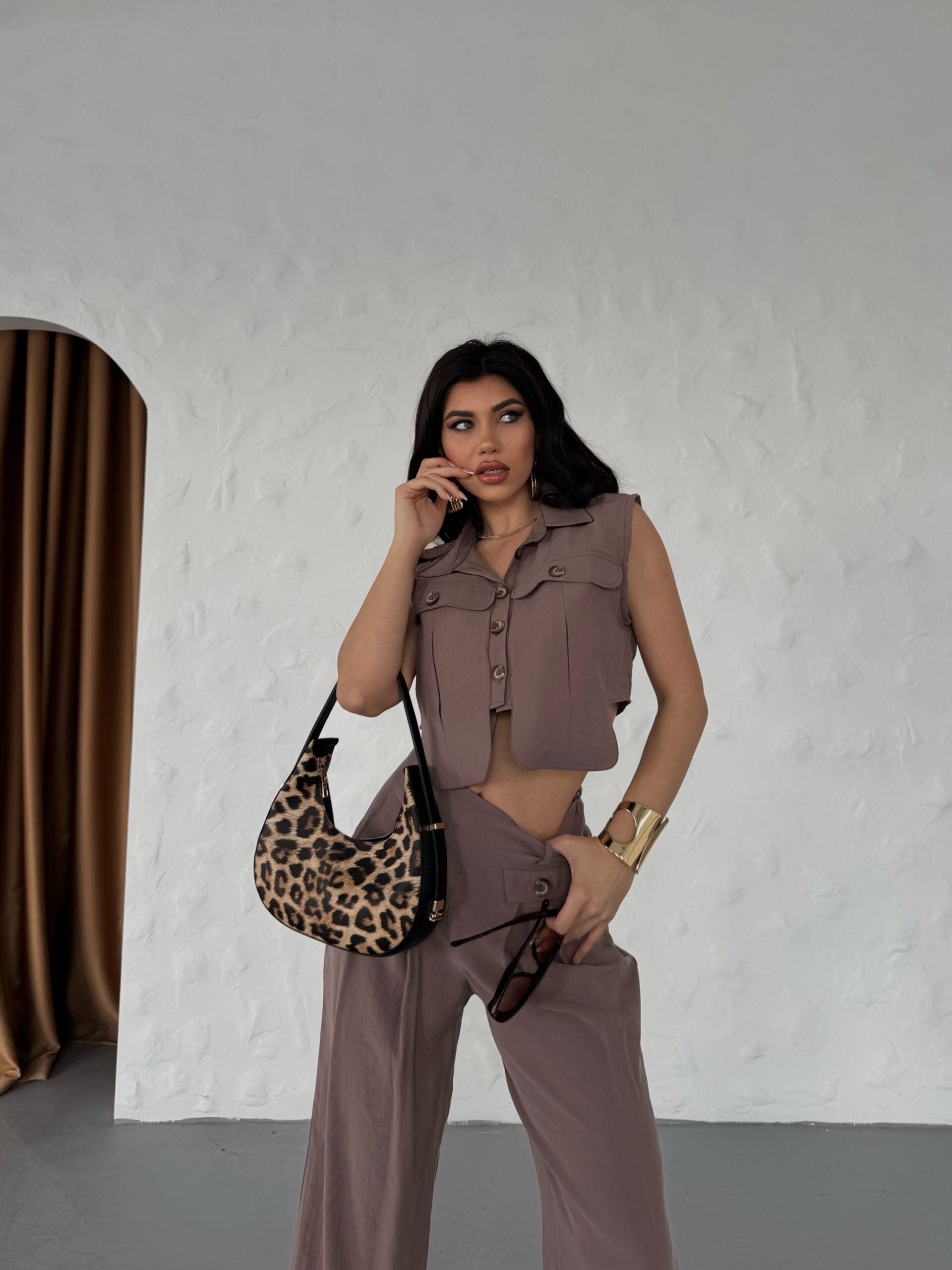 Trendy Kadın Çantası Minimalist Extra Cüzdan Omuz Model Leopar